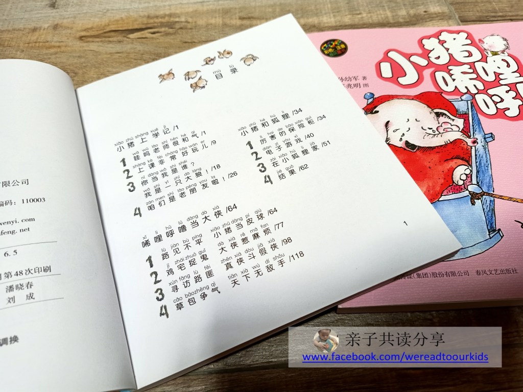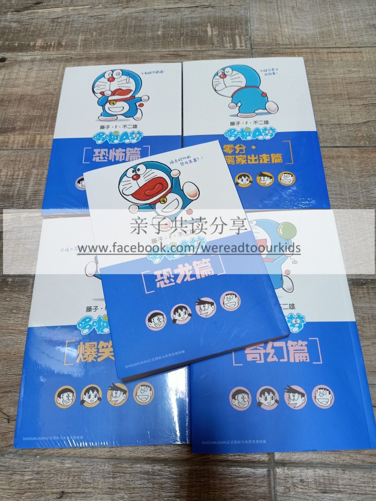2.适合孩子自己独立阅读的书 生字不多(一页有超过5个他认不出的字就不适合了),内容符合他的理解能力,最重要是能让他主动翻阅的书。一般我介绍新书给他时,会先共读前几页。他如果真的很感兴趣,会自己再翻看。当然也常发生他要我从头到尾读一遍的状况。(例子,Dr. Seuss, Usborne First Reading,哆啦A梦漫画集,父与子漫画集,一千零一夜)