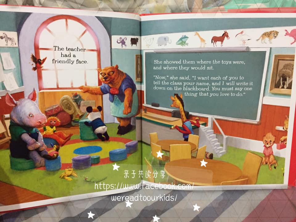 作者用拟人方式跟孩子介绍幼儿园上学是怎么回事,故事写实之余也带点幽默。有两只动物我真的不懂他在画什么,我还被亘宝问的口哑哑