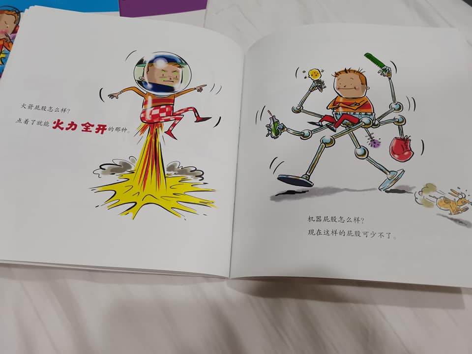 近期买的华文书,兄弟俩最喜欢这套《屁屁大王》。关于屎尿屁的书,孩子们通常都会捧场,而且看得哈哈大笑。这套书会给孩子们一些意想不到的点子,大家一起来发挥创意,想想自己想要个怎样的屁股吧!