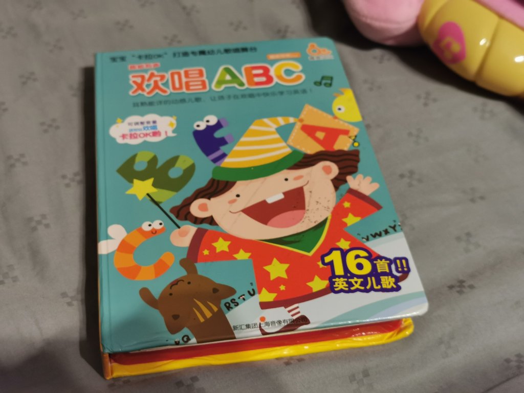 ,我很喜欢这本趣威的 《欢唱ABC》,书里一共有16首经典英文儿歌。每首儿歌朗朗上口,节奏感强,插图也不错。