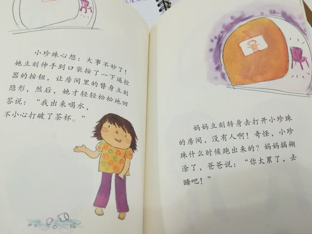 其实,小珍珠自己也偷偷订制一个机器人。当天晚上,她自己就溜到外面玩乐,去夹娃娃、喝糖水、到书店看书。好心的安哥安娣打电话告诉妈妈,叫妈妈看紧点小珍珠,外面的坏人可多了。妈妈都对他们说,小珍珠在房里温习功课。这就奇怪了。大家猜到是什么一回事吗?