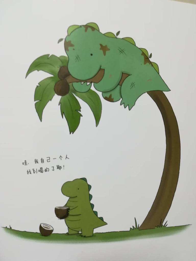 我想应该没有人会不喜欢书中这两父子。那胖嘟嘟的恐龙、简洁的画风,非常讨喜。
