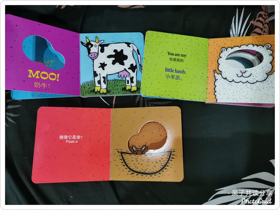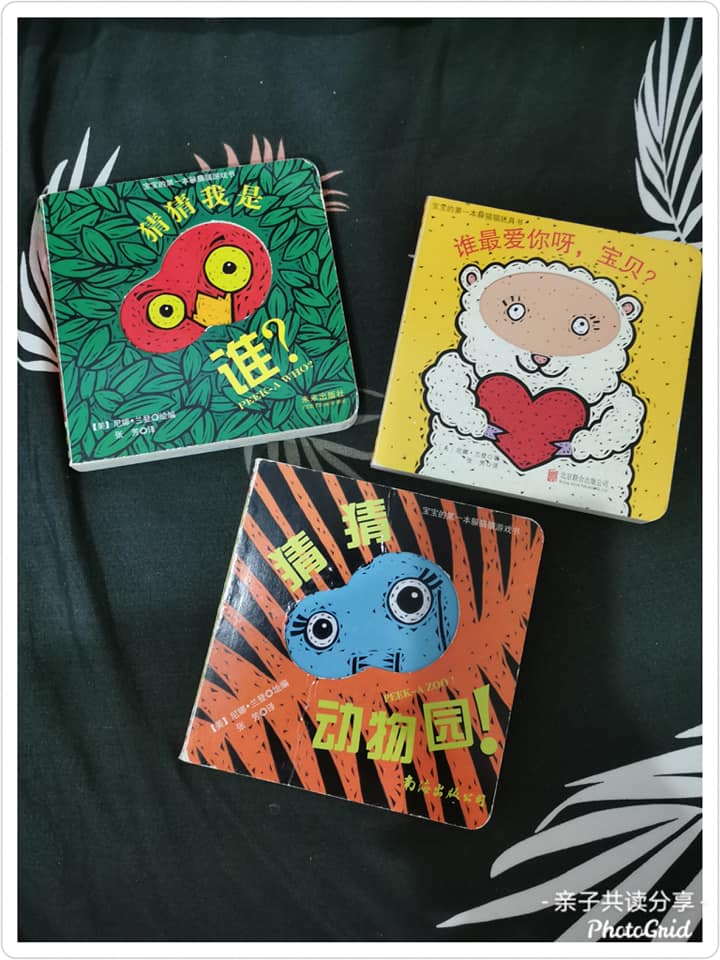 她说低幼孩子对这些挖洞页有种莫名的吸引力,尤其适合0~1岁的孩子。亘宝1岁开始看,他很喜欢每一页翻开后到底是什么在等着她。《谁最爱你呀,宝贝?》最后一页有一面镜子,一翻开亘宝就会看见自己,再搭配文字“你是我的完美小宝贝”(原文:you are my wonderful child)。自然而然亘妈就会拥抱亘宝然后念出这行字![]()
