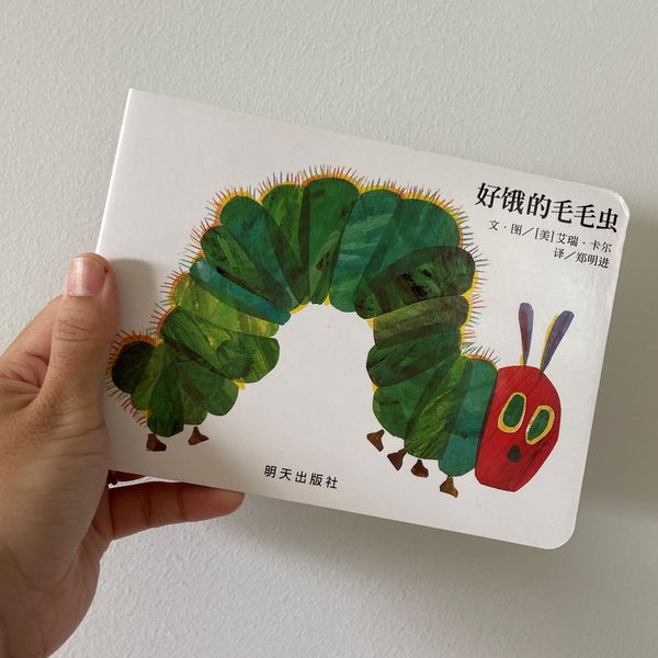 我想想有时候小朋友长大的速度就像毛毛虫一样,两个星期就好像长大了好多好多。看着毛毛虫的蜕变,就好像看着自己的小孩长大一样。我读这绘本给5个月大的宝宝听,她倒是听得津津有味还学会翻书了呢。