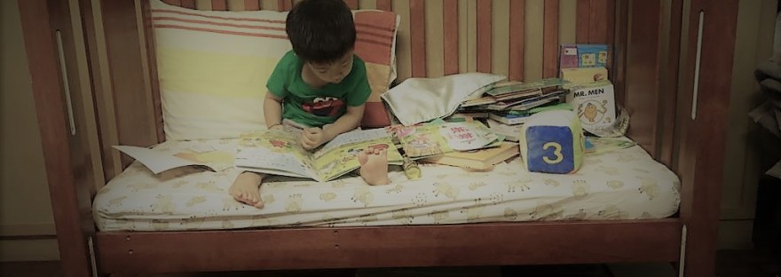 现在,大头每天阅读五到十本书,有自己的一个阅读角落(如图:父母把婴儿床改造成一个既舒适又不会造成凌乱的好空间),而且有时候,妈咪和孩子还可以窝在一起各自阅读自己喜欢的书。
