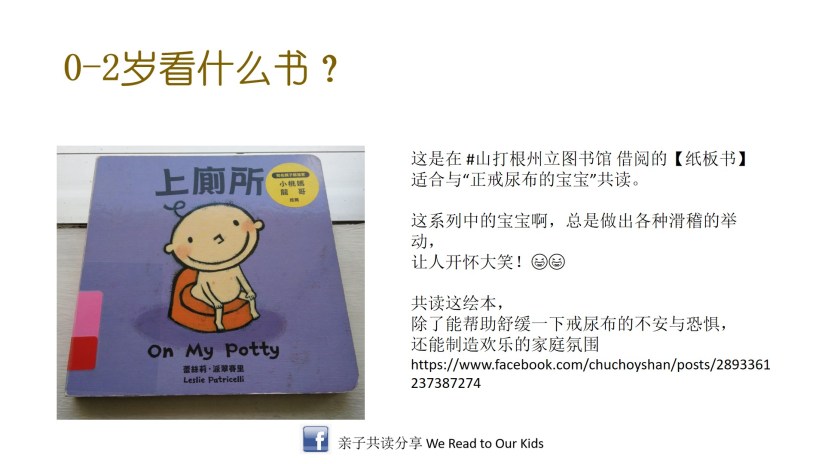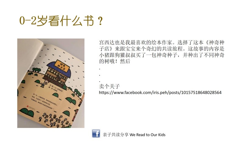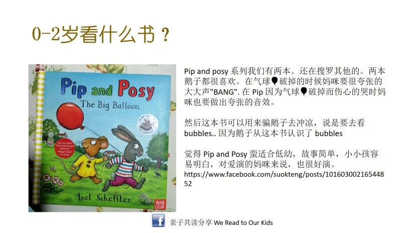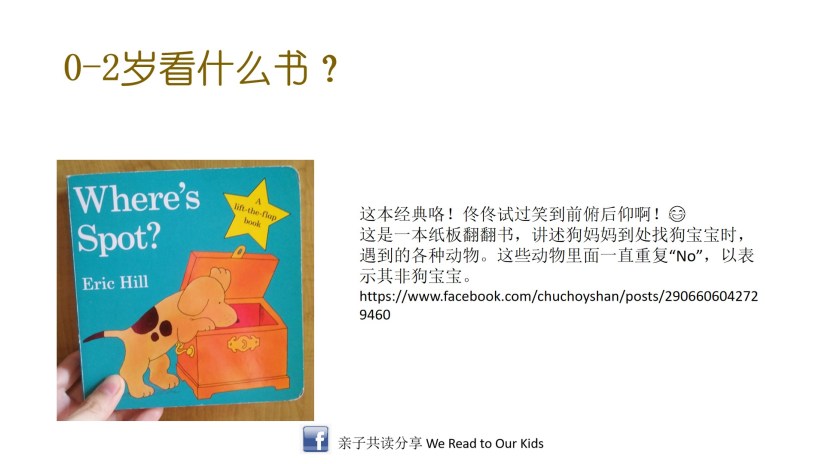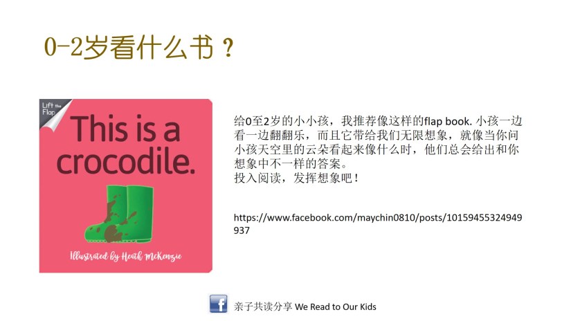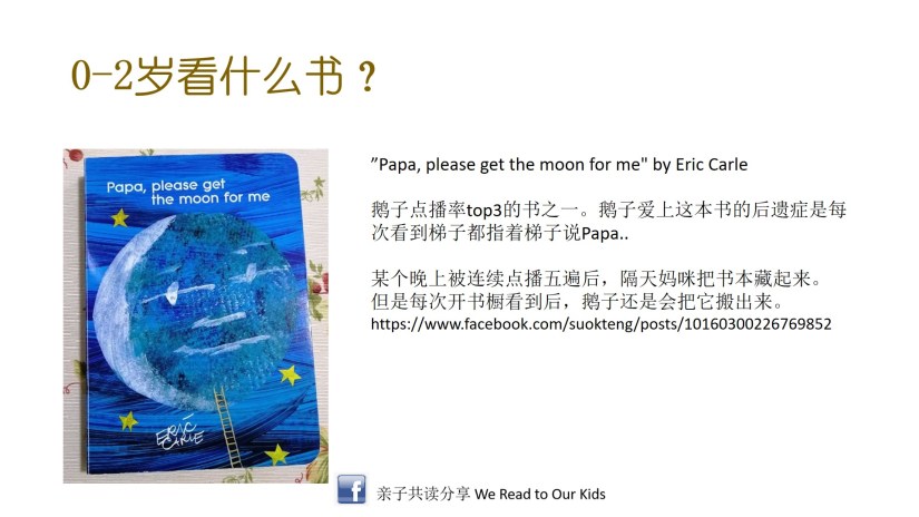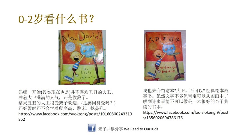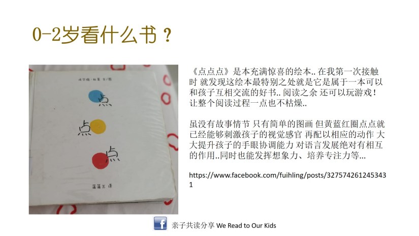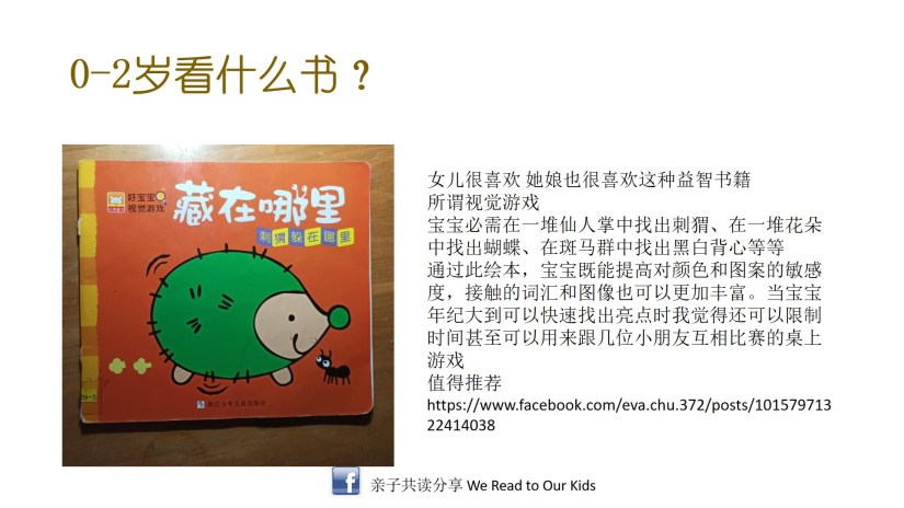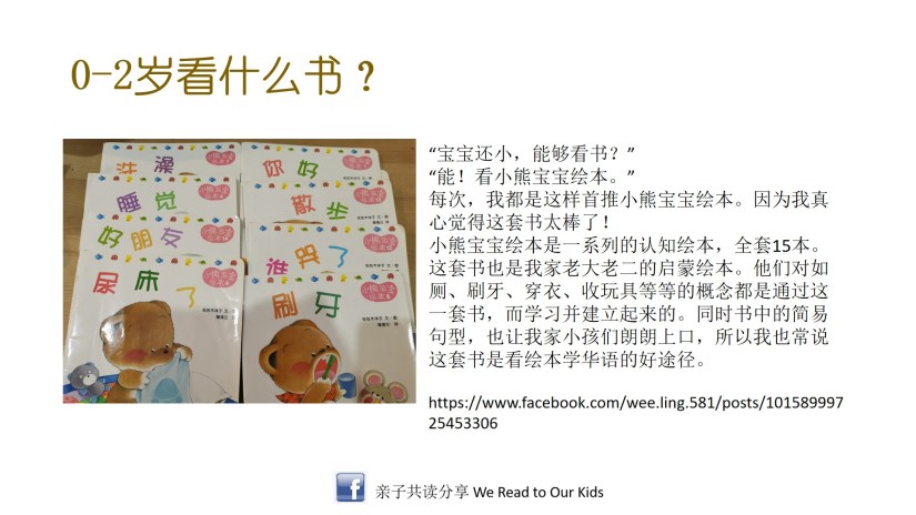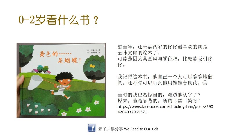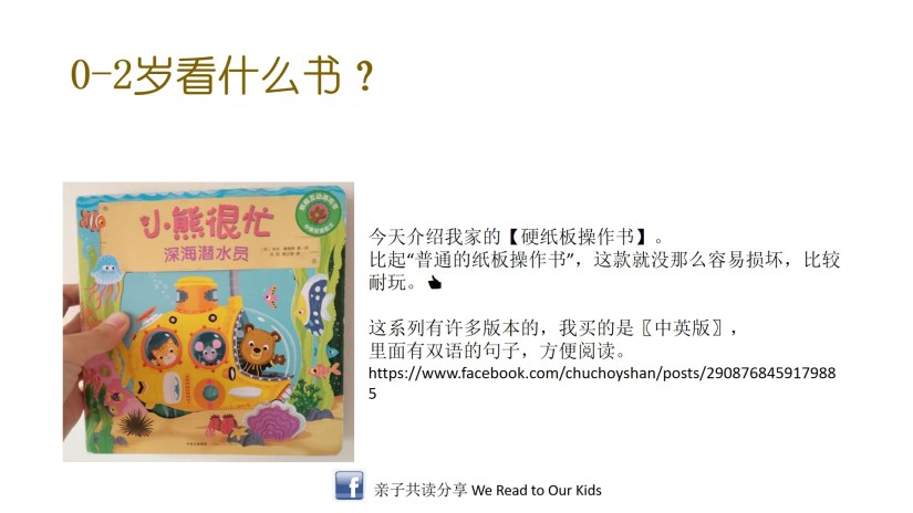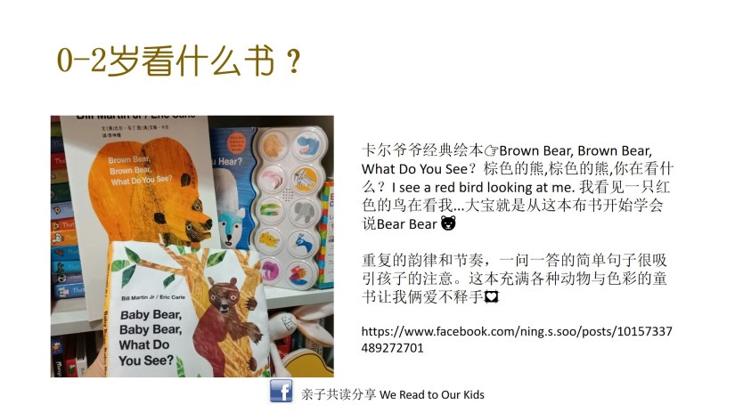对于小宝宝来说,边翻书边哼唱,是很有吸引力的。首先爸爸妈妈的声音对他/她来说既熟悉又亲切,即使五音不全,听在宝宝耳里却是绕梁三日的优美声音。拿着书本唱,可以让他同时从歌声和图画得到适量的感官刺激。如果加上动作,摆摆手,扭扭腰,孩子还可以训练大肌肉运动技能。