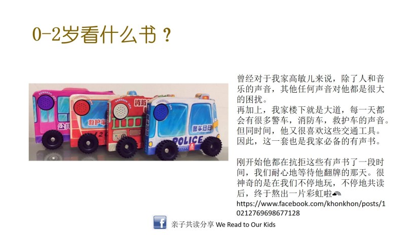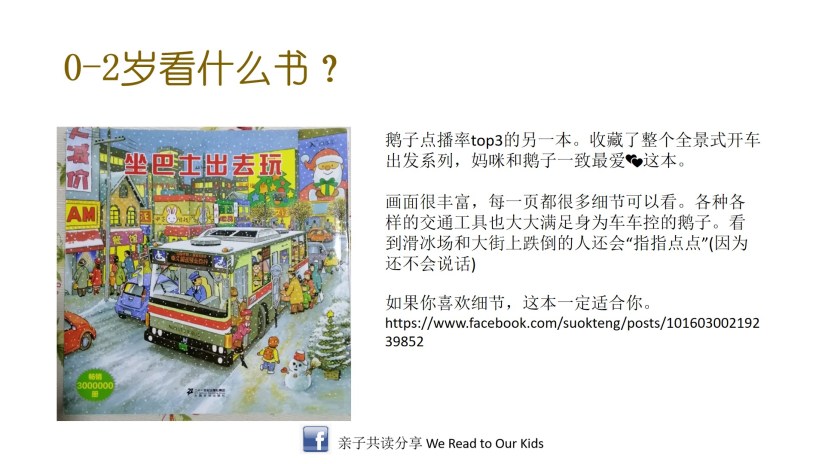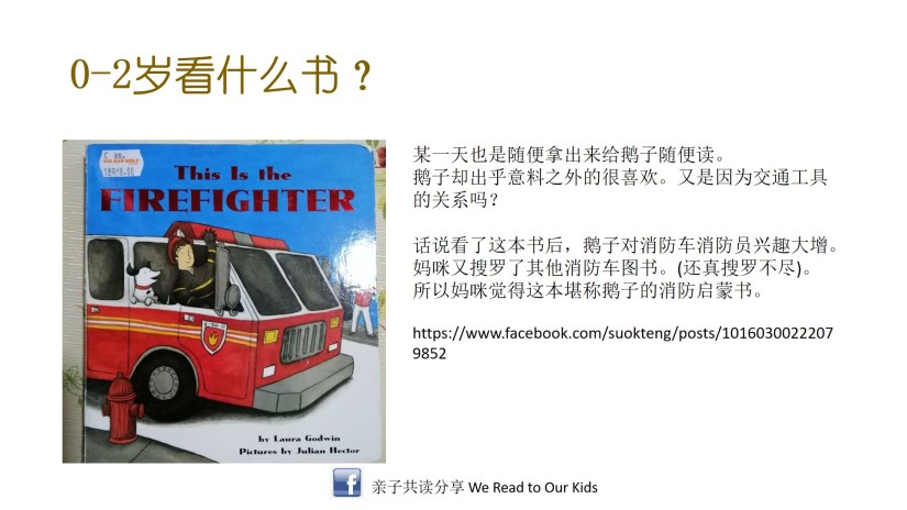 《小车嘀嘀嘀》、《小小消防员》、《方形》和《Wheels On The Bus》适合与0-3岁孩子亲子共读,如今能够通过起步盒购得此书。